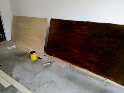 О том, как тонировать фанеру, мы уже рассказывали в статье про изготовление Мебель для ванной своими руками» href=»https://remont-dlya-vseh.ru/mebel-dlya-vannoy-svoimi-rukami/»>шкафчика для ванной комнаты, но повторюсь. Оптимальный вариант для нанесения в домашних условиях – теплая ламповая смесь масел и восков. Например, марки OSMO. Наносится в несколько слоев валиком (обычно 2-3). Предварительно и после каждой выкраски фанеру шкурим, после последнего – полируем.