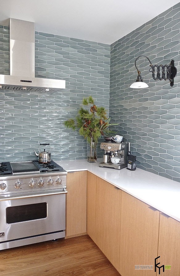 Мебель обязательно расставляется с учетом удобства и функциональности. Угловая форма – наиболее подходящий вариант для кухонь модерн: