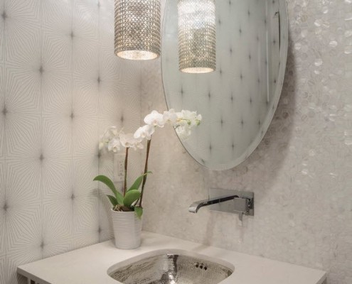 Интерьер ванной не перегружен узорами, орнаментами и акцентными аксессуарами. Вполне достаточно одного-двух ненавязчивых украшений – и ванная комната выглядит оригинально и свежо: