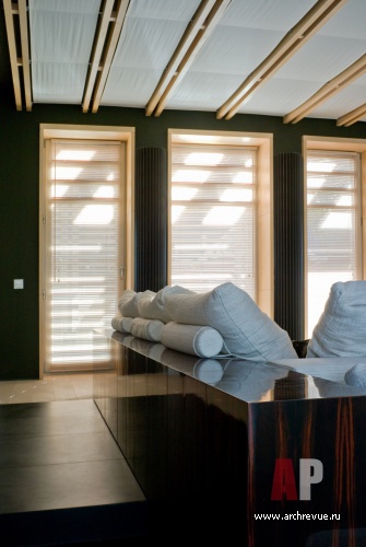 Дом построен в стилистике, которая мне лично очень близка и которую называют минимализмом. Функциональная сторона – это, естественно, пожелания заказчиков, внешний вид, композиция – моя инициатива. Фасад здания отделан беленой лиственницей, доломитом и черным туфом, который невозможно найти в Москве. Специально за ним Ольга летала в Армению, где находится месторождение. Камень сразу нарезали нужного размера и контейнерами везли в Москву.