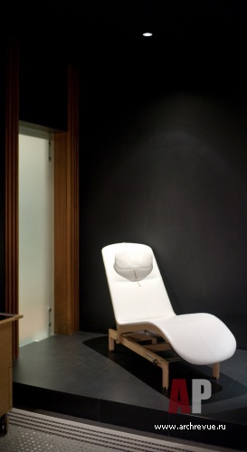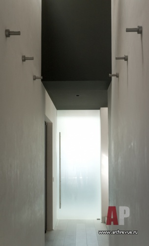 Избегая прямолинейности белого цвета, авторы используют его многочисленные оттенки. В результате возникает ощущение, что в этом доме люди живут давно. Функционально важные зоны выделены дополнительно цветами: коричневым, темно-серым, черным. Значительная часть мебели выполнена на заказ по эскизам архитекторов. Она встроена в стены или ниши и сохраняет в помещениях ощущение простора.
